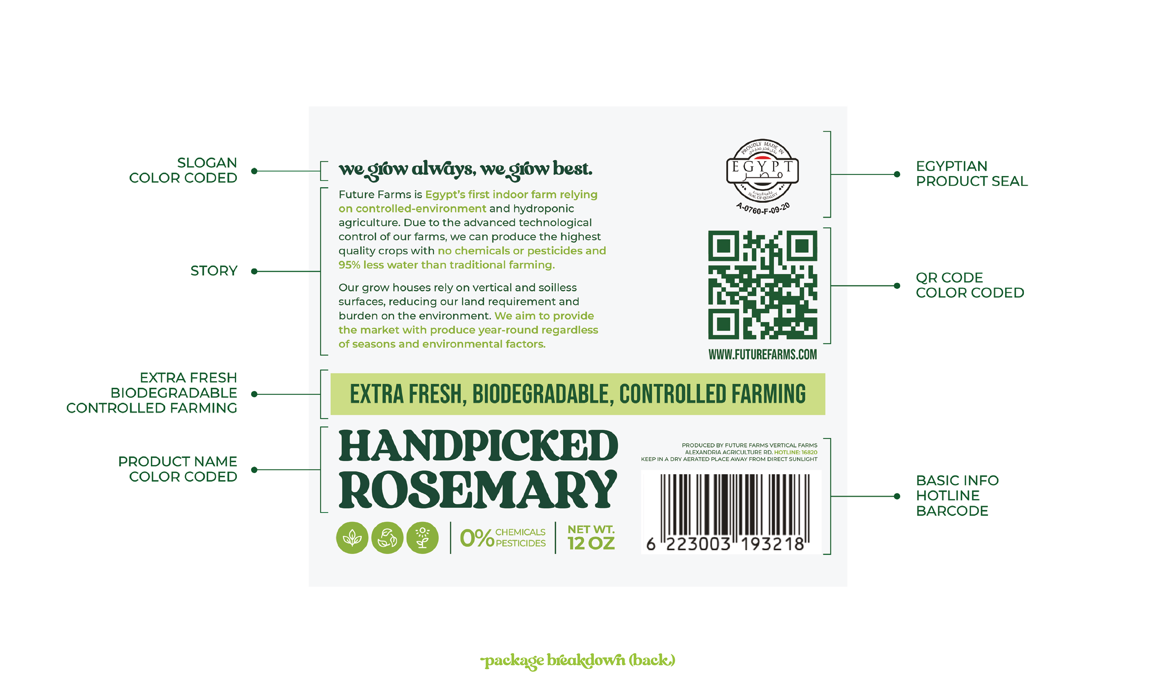 A visual identity and packaging system created to reflect Future Farms’ commitment to freshness, sustainability, and forward-thinking agriculture. The design emphasizes clarity, natural cues, and a wholesome presence that resonates with modern consumers. Project done with Plush Studios. Cairo, Egypt.